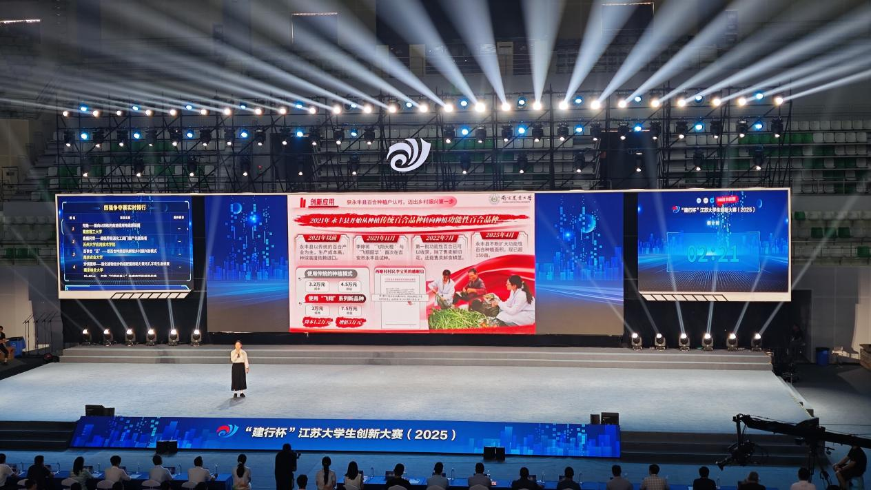 7月9日至10日,“建行杯”江苏大学生创新大赛(2025)在南通大学举行。我们参赛项目“百事合‘芯’——用百合种质密码解锁乡村振兴新模式”以红旅赛道创意组小组第一的优异成绩,成功挺进四强争夺赛,并获得江苏省一等奖。